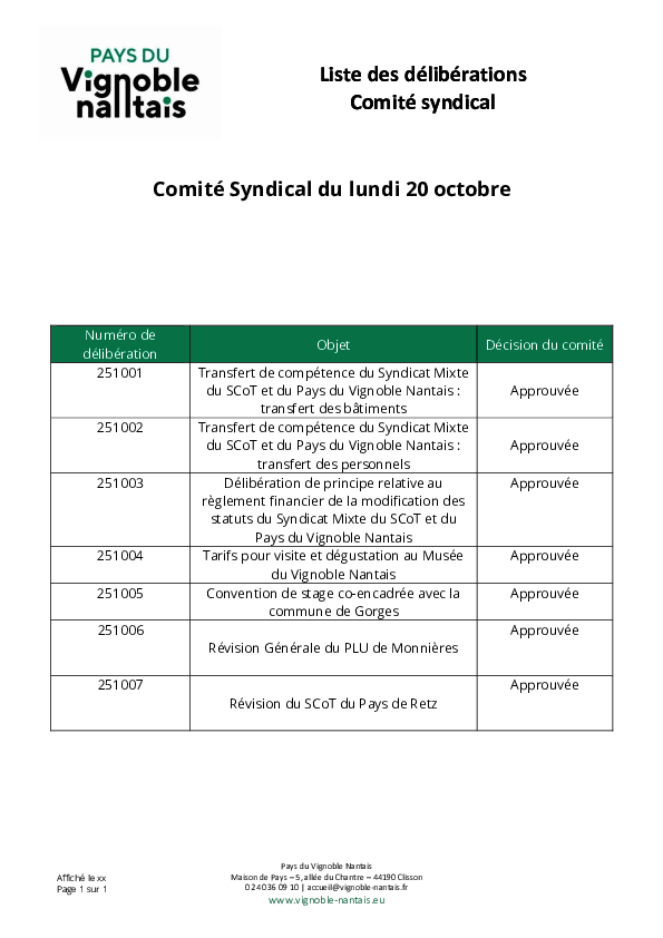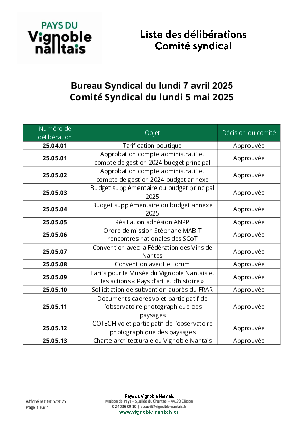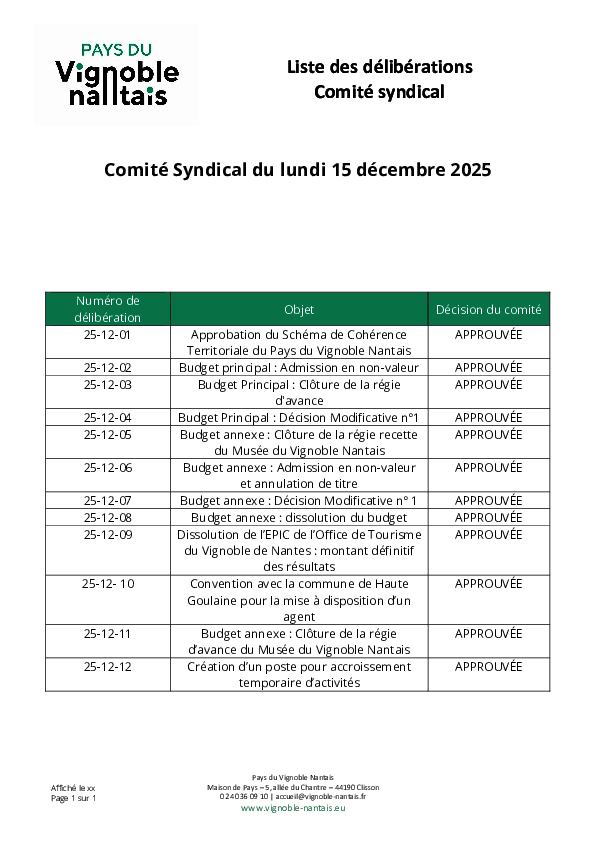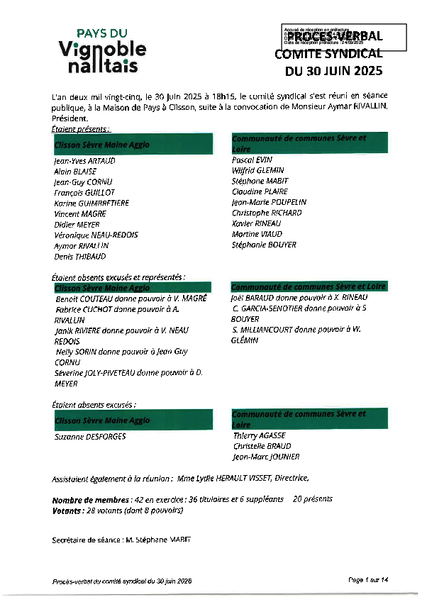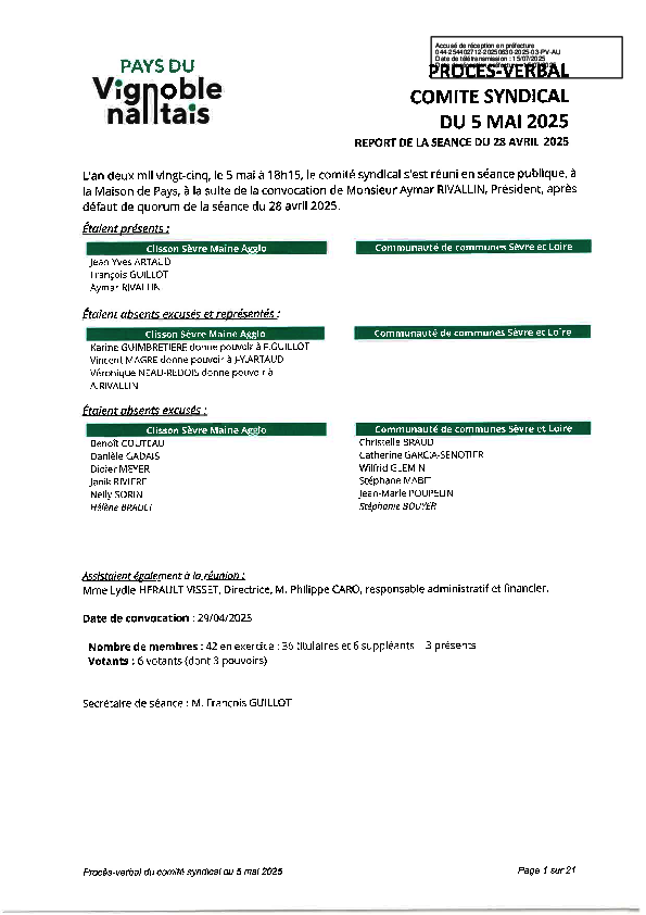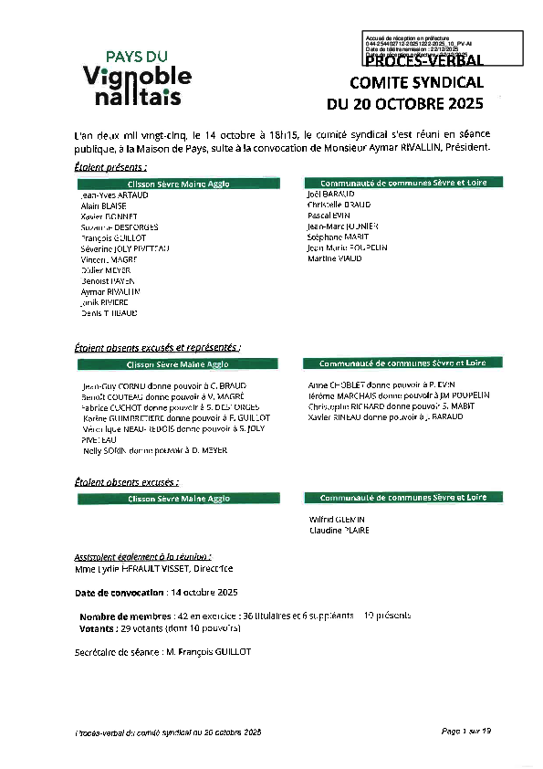 Comité Syndical du 6 janvier 2025 (Procès-verbal)
