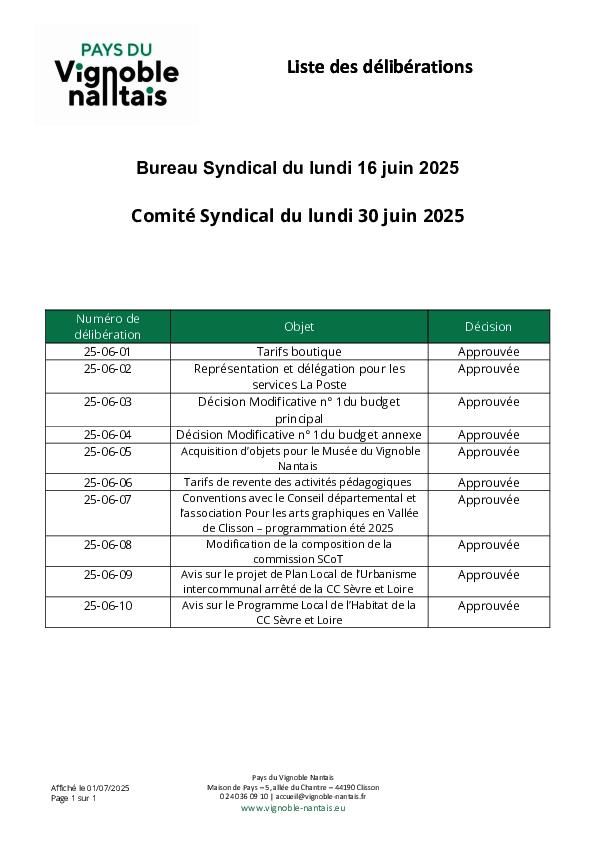Comité Syndical du 26 juin reporté au 3 juillet 2023